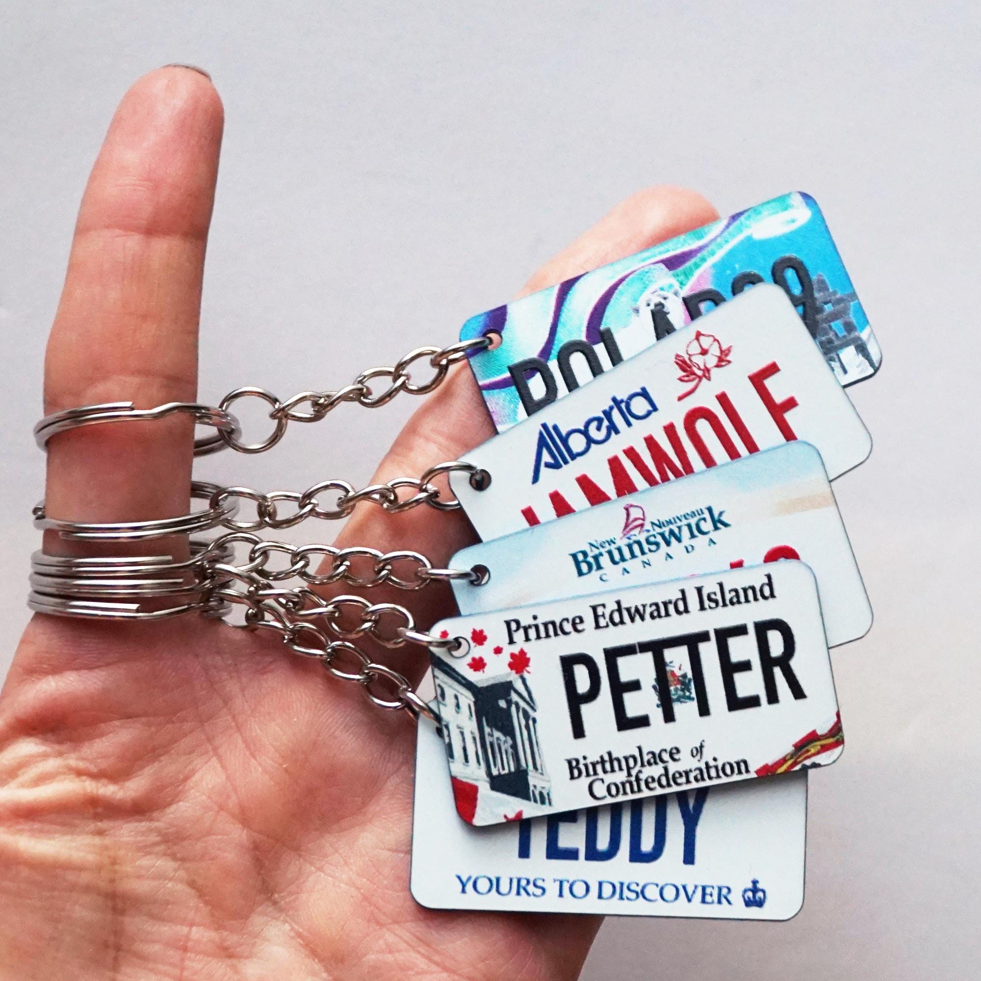 Dieser personalisierte Schlüsselanhänger ist perfekt, um Ihre Reiselust auszudrücken oder ein besonderes Geschenk für jemanden, der Kanada und Roadtrips liebt. Lassen Sie Ihre Schlüssel mit diesem magischen Miniatur-Nummernschildanhänger eine Geschichte erzählen!