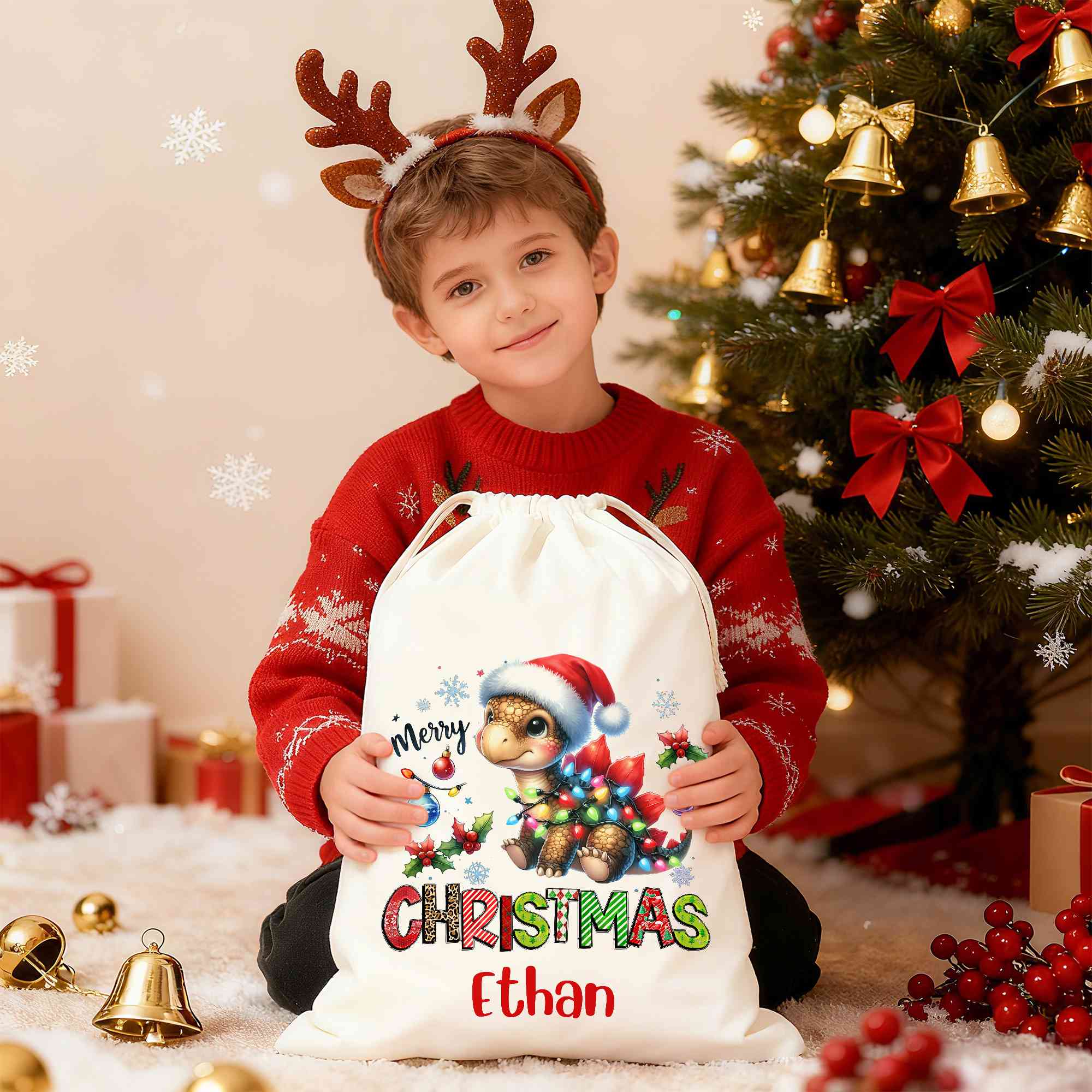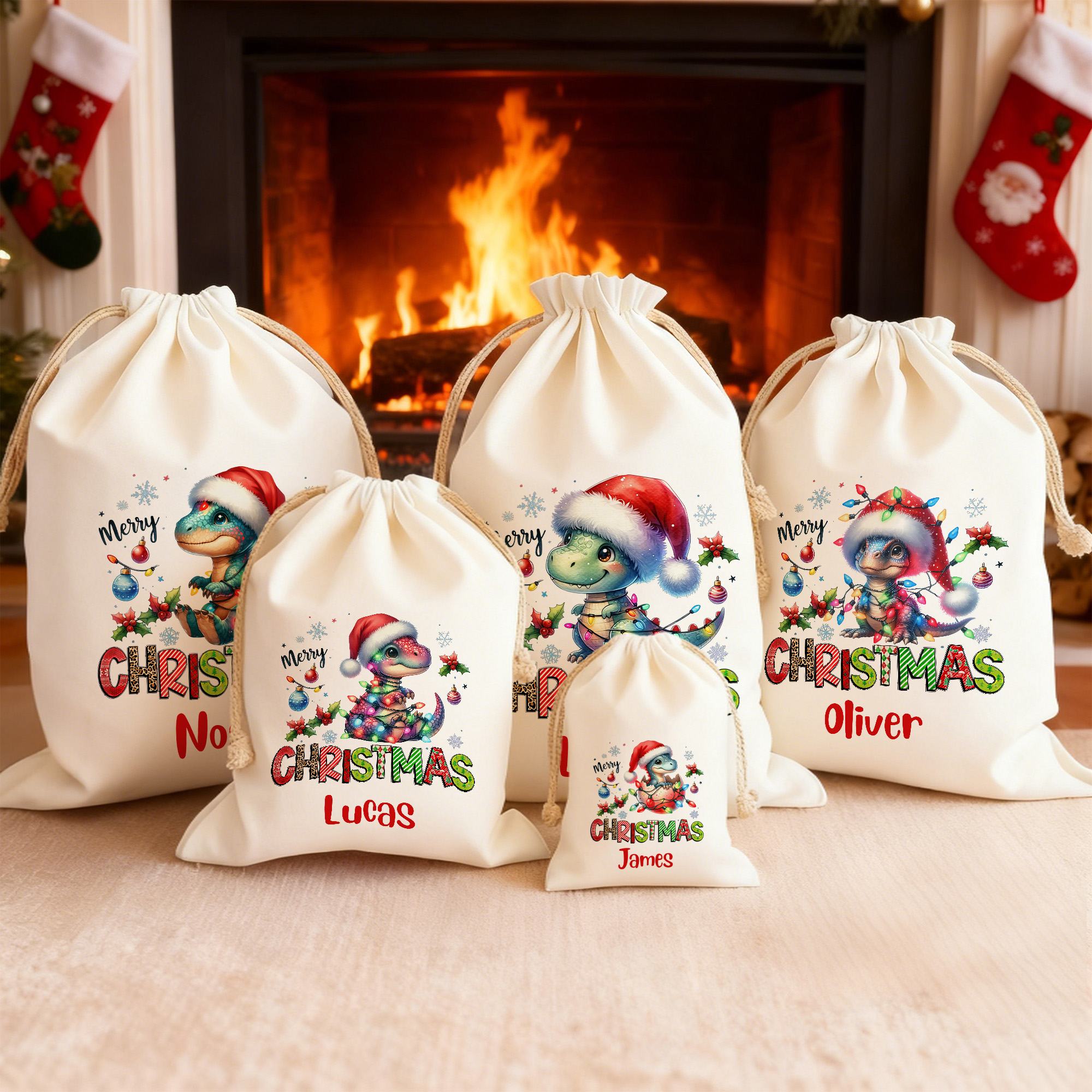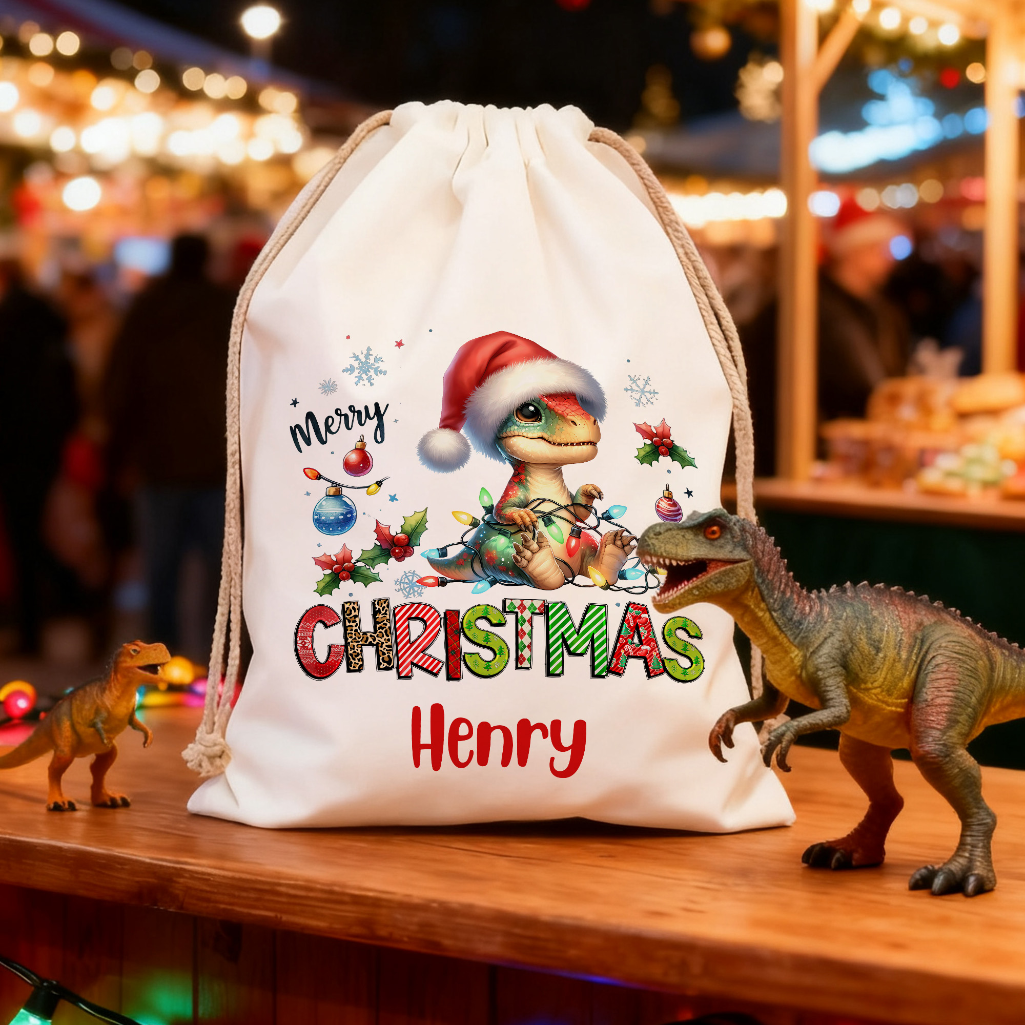 Weihnachtsgeschenk – Dieser personalisierte Weihnachtsmannsack ist eine wunderbare Wahl für Kinder, Familien und Dinosaurier-Fans und sorgt für zusätzliche Freude am Weihnachtsmorgen. Er ist eine liebevolle Geschenkidee für Familienfeiern, Schulfeste oder für alle, die traditionelle Weihnachtsgeschenke einmal anders gestalten möchten.