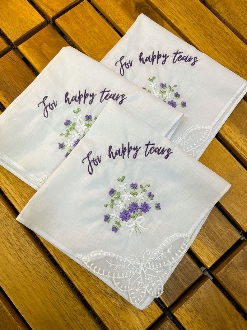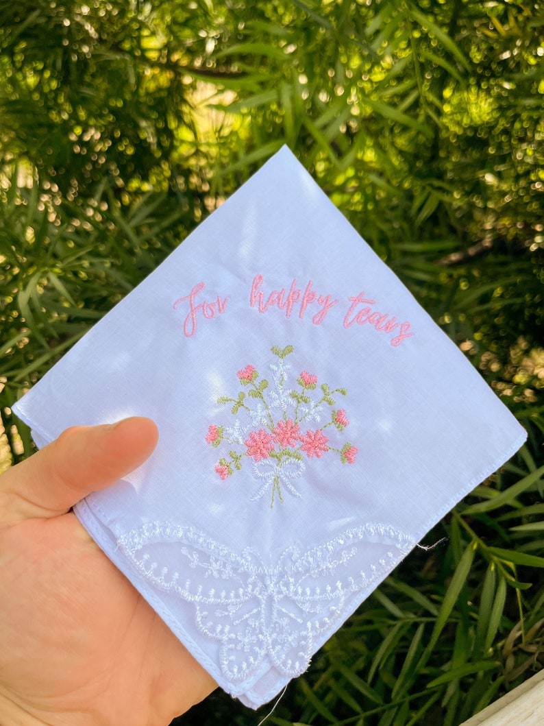 An einem Tag voller Freude, Liebe und auch Freudentränen ist unser individuell besticktes Hochzeitstaschentuch ein liebevolles Andenken für Bräute. Gestalten Sie es mit der Garnfarbe Ihrer Wahl, passend zu Ihrem Hochzeitsthema oder Ihrem Brautstil, und machen Sie es so einzigartig wie Ihren besonderen Tag.