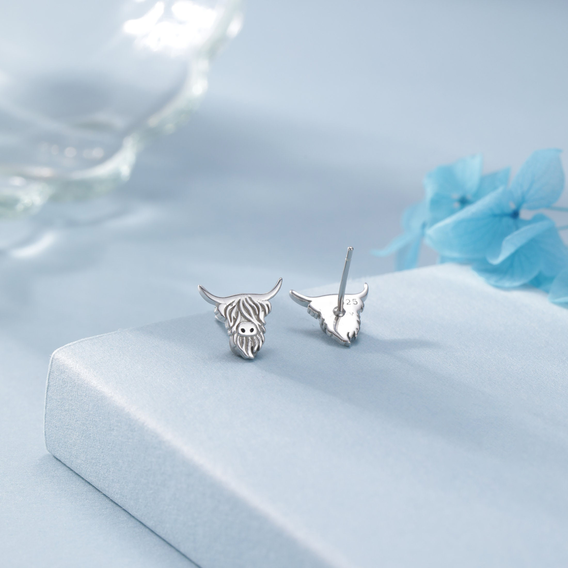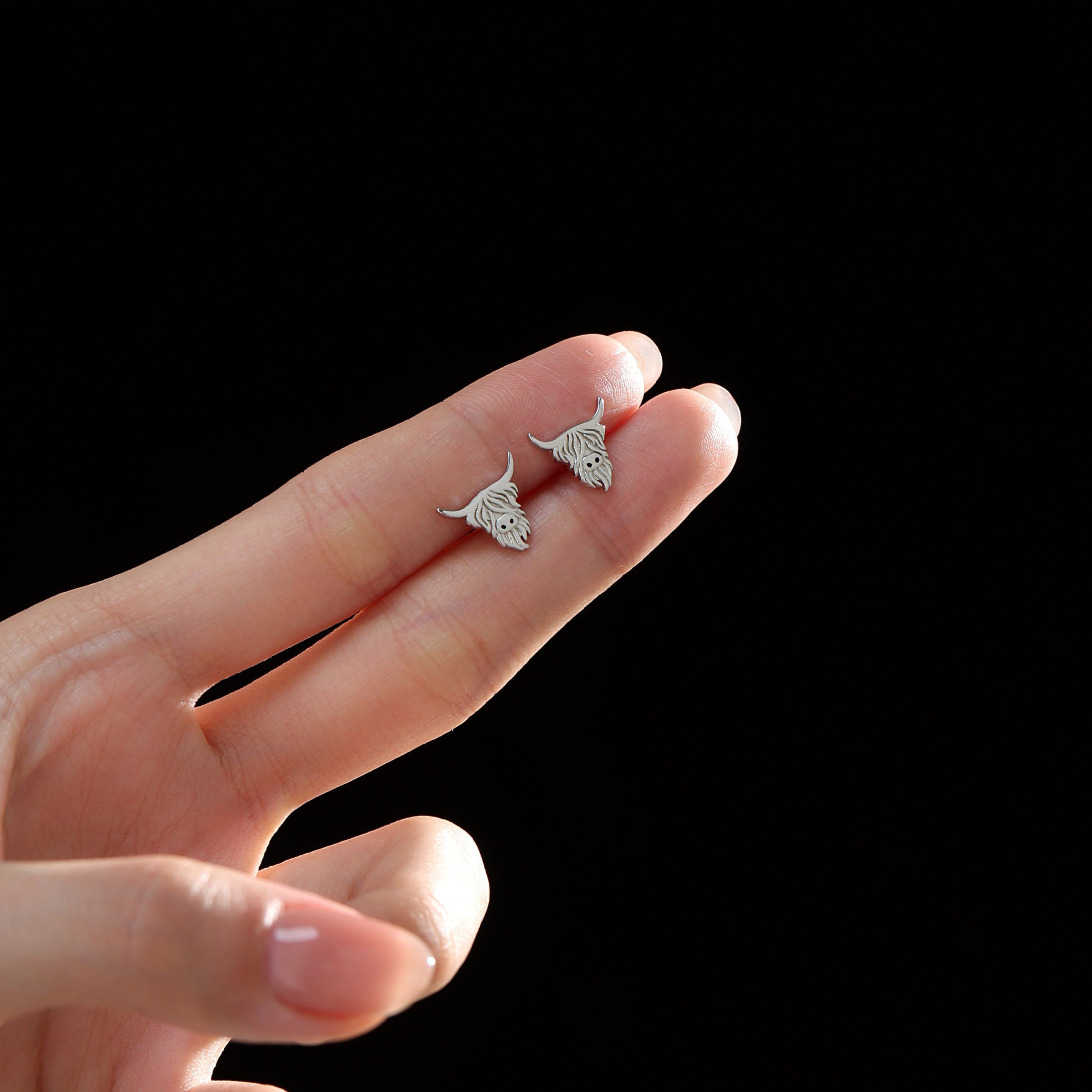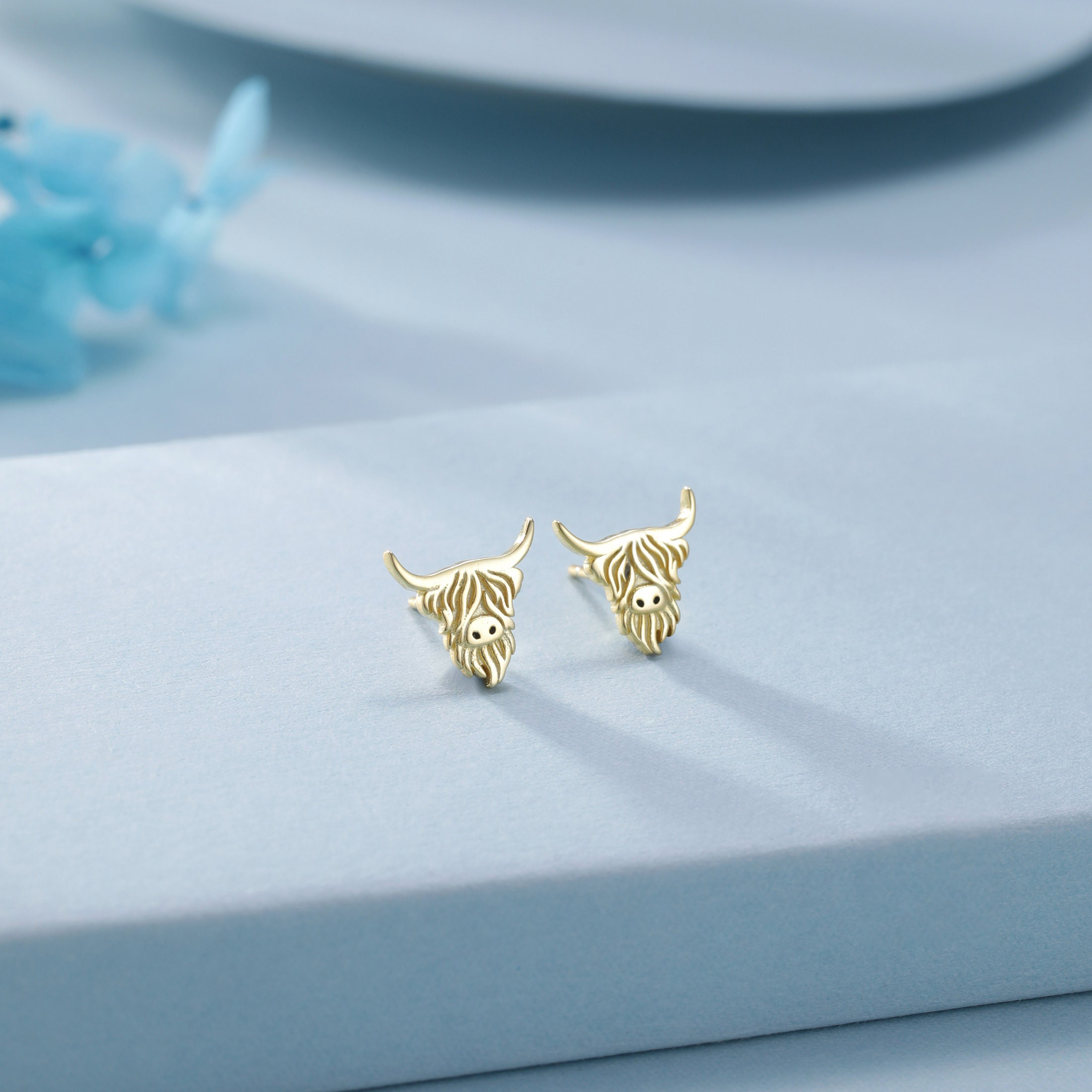 Hochland-Kuh-Ohrstecker aus Sterlingsilber, Stier-Ohrringe aus Silber oder Gold, Kuh-Ohrringe, schottisches Design
