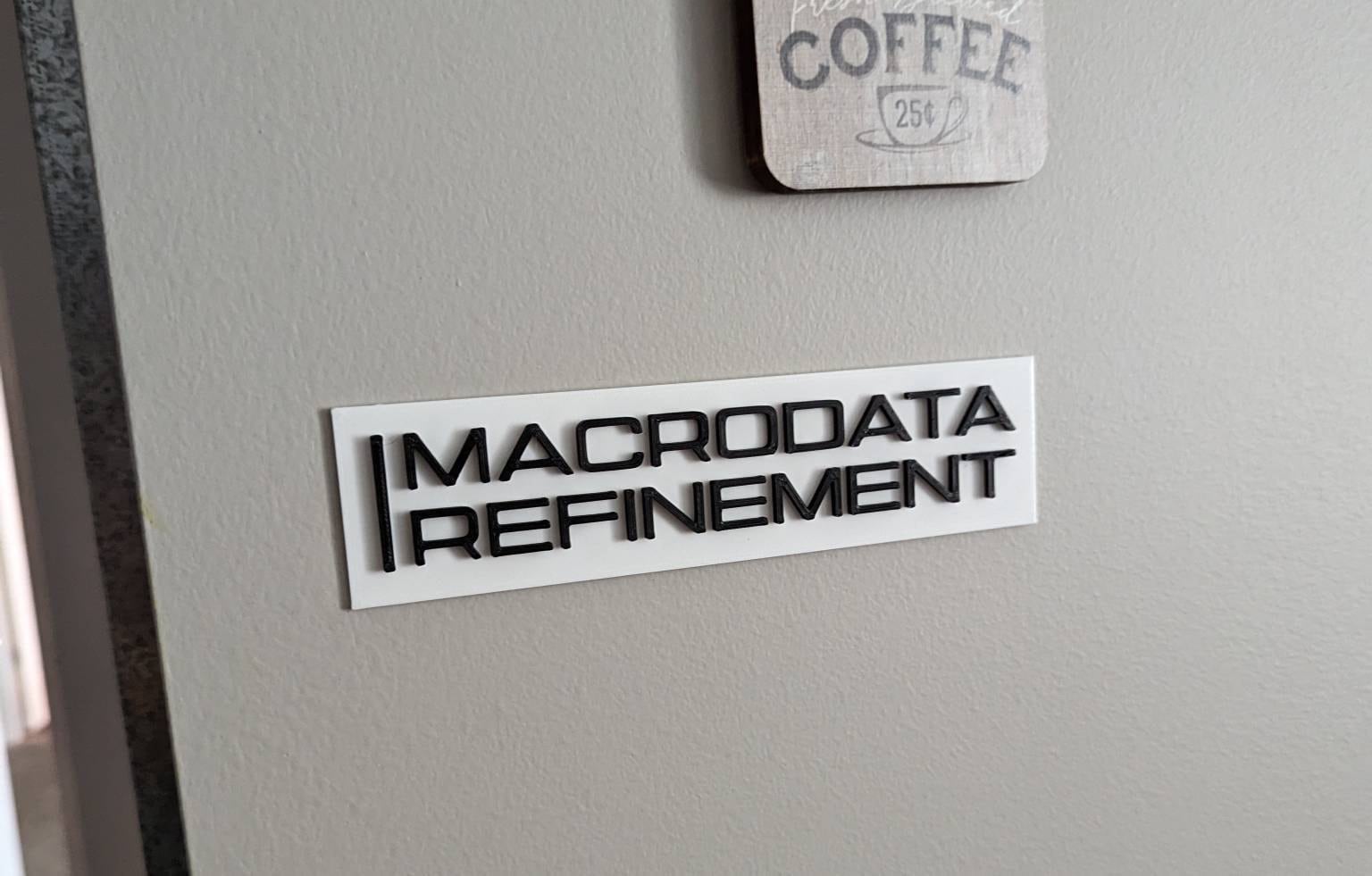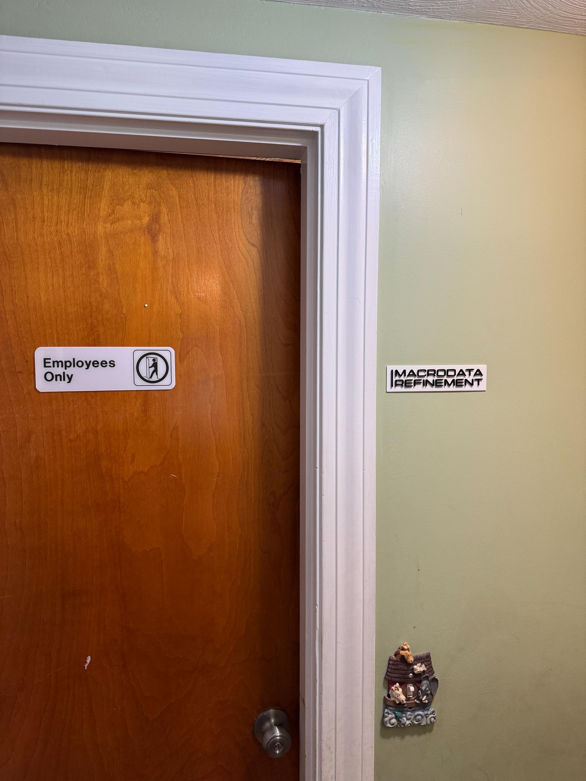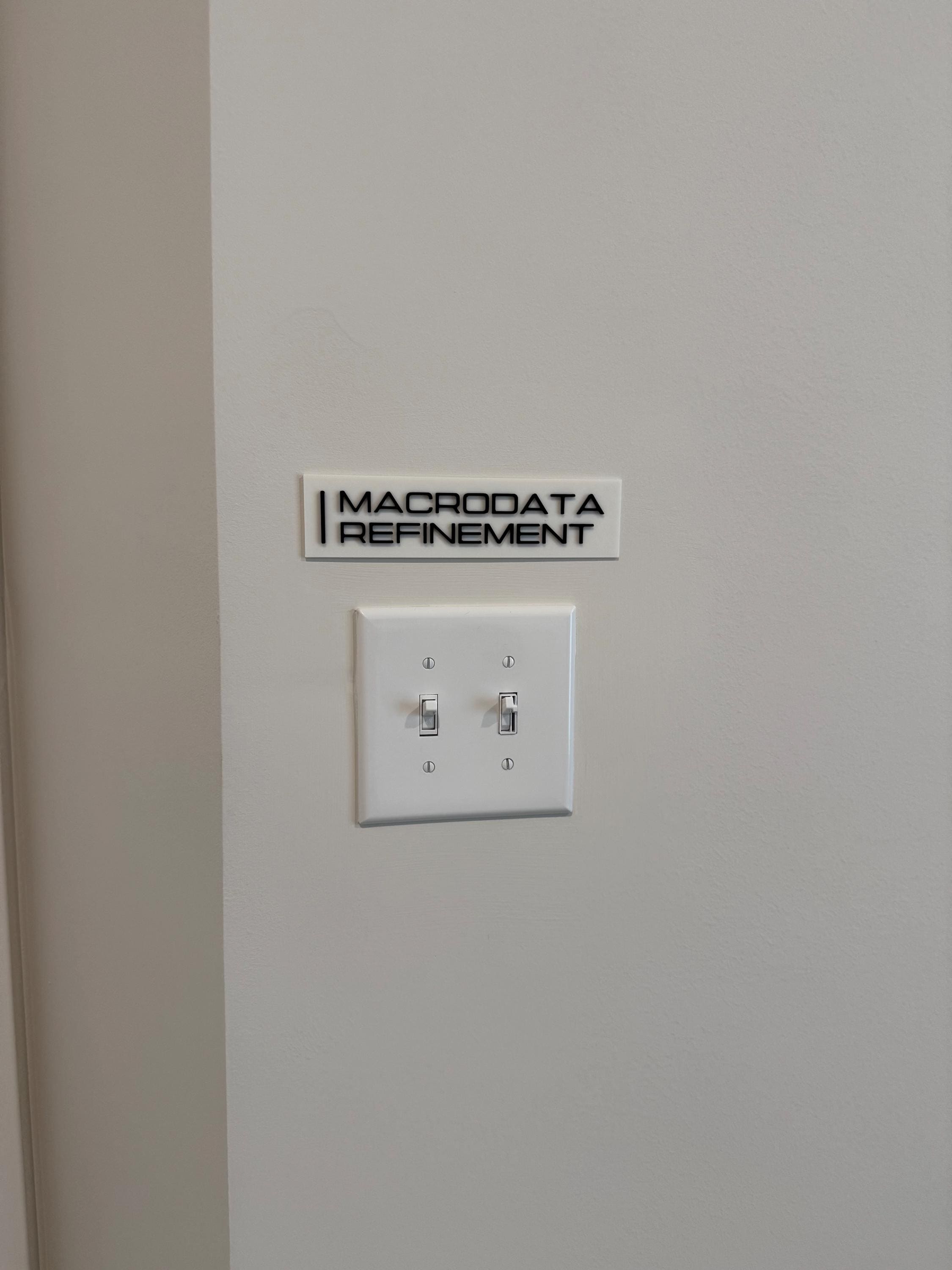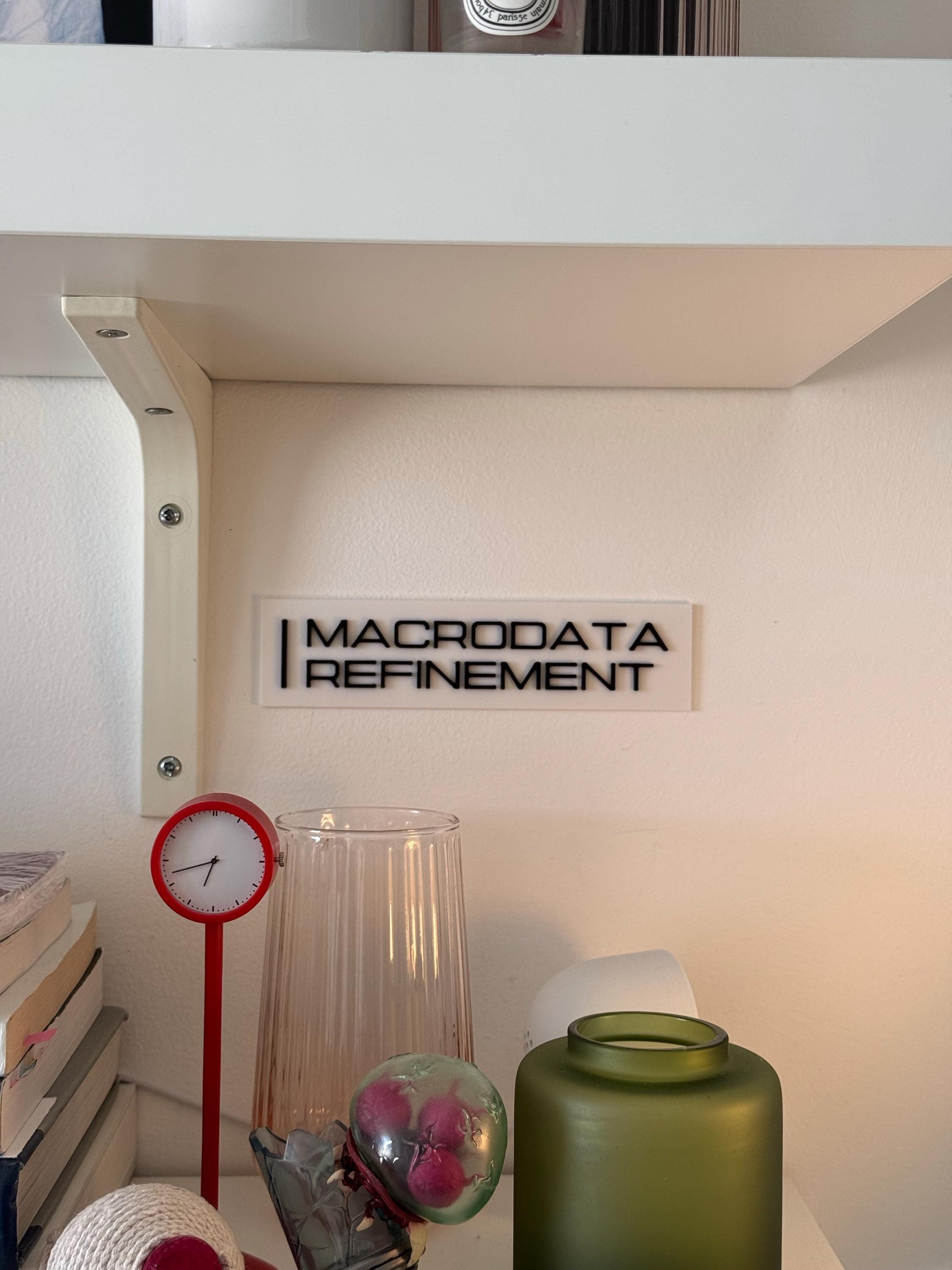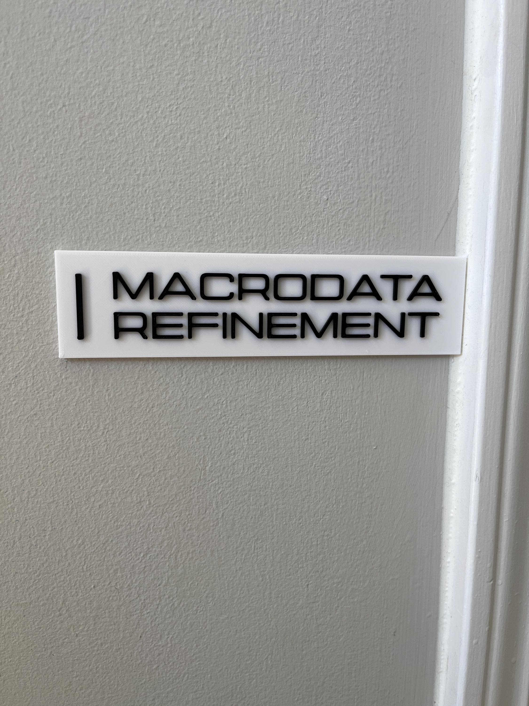 Das Original-Schild von Macrodata Refinement von Severance! Gelobt sei Kier, und möge er sich nicht mit schlechteren Alternativen zufrieden geben: Im Gegensatz zu anderen Angeboten wird hier die exakte Schriftart aus der Show verwendet!