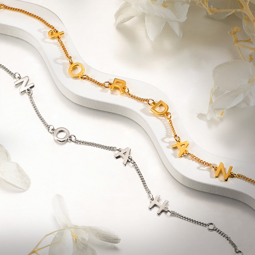 Dieses rosévergoldete Silberarmband ist elegant und Modeschmuck. Es ist ein unverzichtbares Produkt für Schmuckliebhaber. Wählen Sie einfach den gewünschten Buchstaben und wir werden dieses zarte und elegante Armband sorgfältig für Sie anpassen. Dieses Armband kann bis zu 8 Buchstaben aufnehmen. Wir haben 925er Silber als Material für die Produktion ausgewählt und bieten Ihnen drei Farben zur Auswahl! Bitte starten Sie Ihre Anpassung sofort, wir verpacken sie in eine schöne Schachtel und senden sie Ihnen zu!