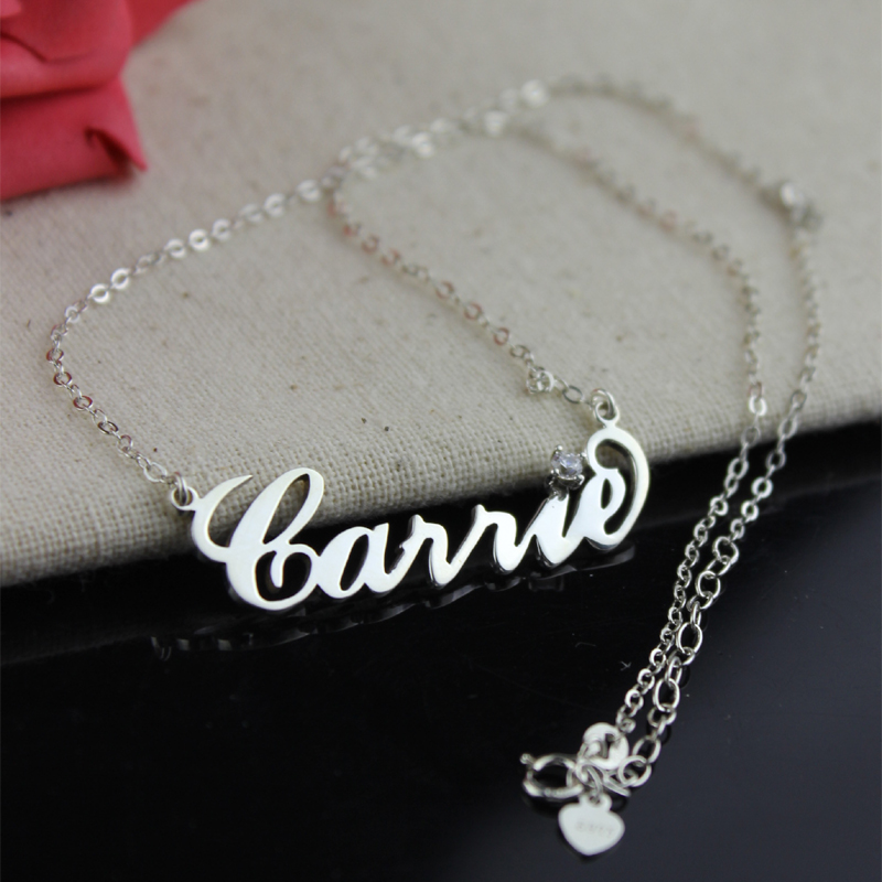 Namenskette Carrie mit Geburtsstein Sterling Silber