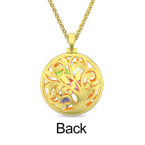 Halskette mit rundem Gehäuse Familienstammbaum und Geburtsstein vergoldet