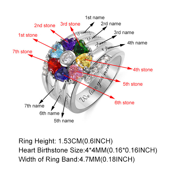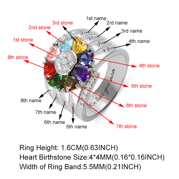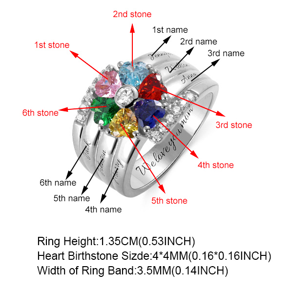 Ob Familie, Freunde oder Liebhaber, haben wir alle Arten von Versprechen und Romantik. Dieser hochwertige Ring kann Ihre Liebe und Ihr Versprechen symbolisieren. Die Oberfläche des Rings ist fein poliert, um einen Hochglanz zu zeigen. Sie können die Anzahl und Farbe der Steine auswählen und Namen oder einige bedeutungsvolle Wörter in Ring gravieren. Dieser Ring ist eine Geschenkbox mitgeliefert, die ideal als Geschenk ist oder den Ring aufbewahren kann.