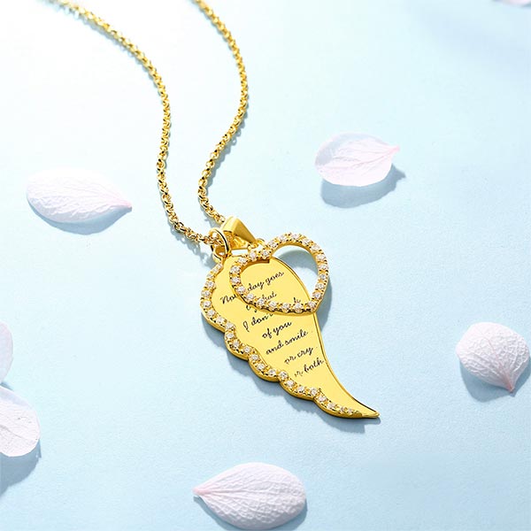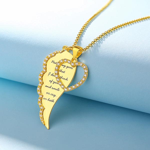 Personalisierte Engelsflügel Herz Halskette in Gold
